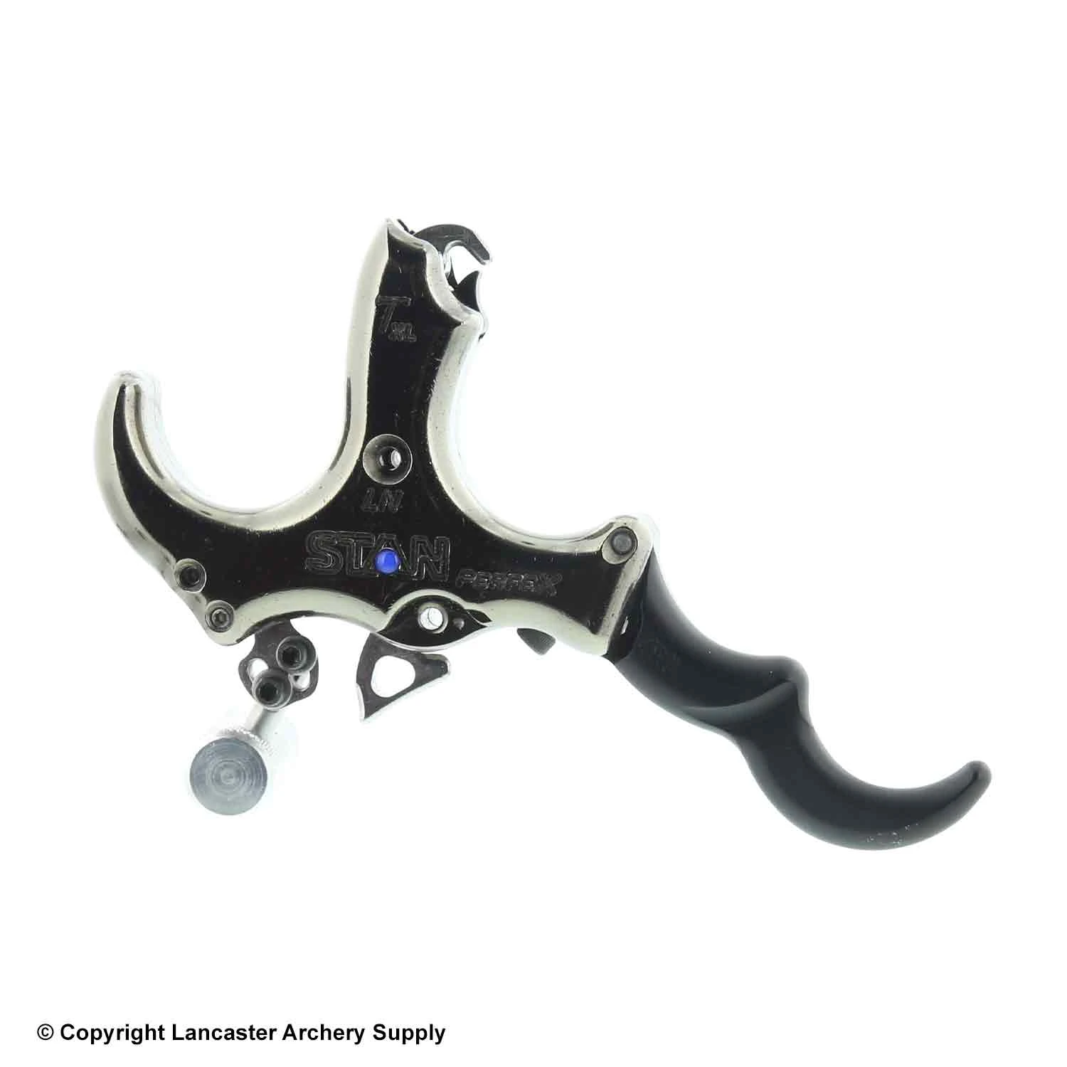 Typical Stan quality thumb button release, with a long neck that gets the hook out past the knuckles for archers with larger hands.