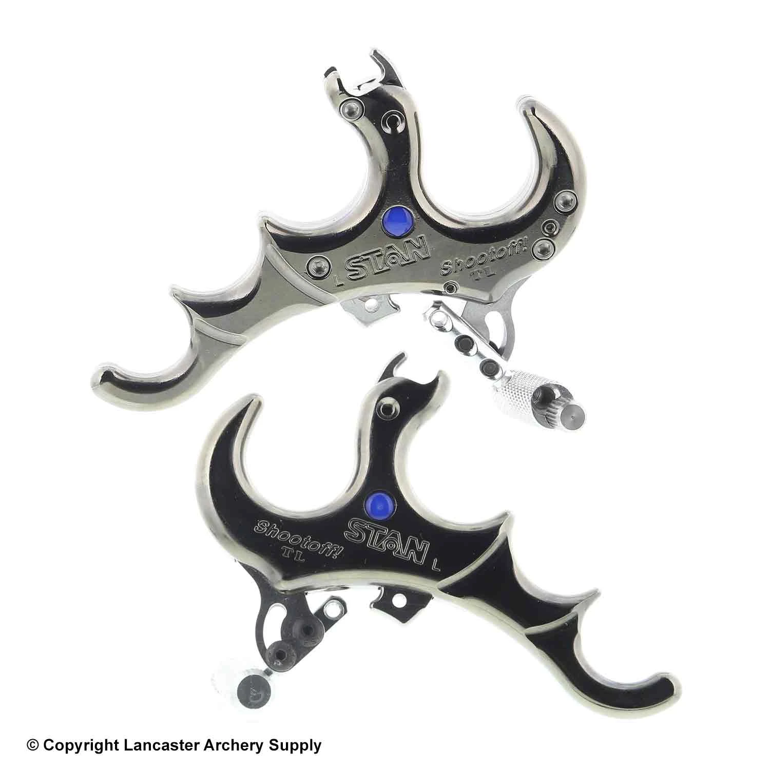 | Here’s the wildly popular Stan Shootoff with a copper handle. That means it’s heavy, which some archers prefer in order to improve their control over the release. They get a better feel for the heavy release in their hands. This thumb-activated release includes the new training lock, which means archers can practice with it on their bows without releasing the string. • Heavy Metal, made of brass |